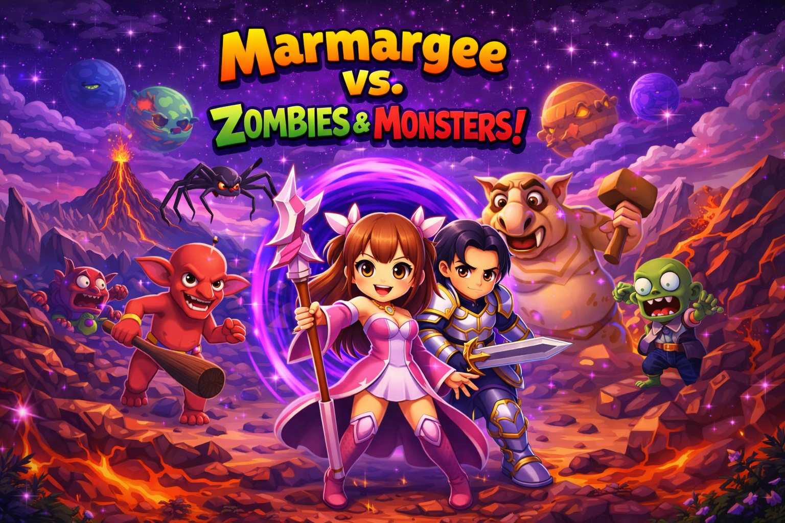 Zombies and monsters have launched a surprise attack from space devastating the blue planet of Taetania, their homeworld! Luckily Marmargee and Matmateo were able to escape… Other worlds are now being invaded by these zombies and monsters and are crying out for help! Will Marmargee be able to stop them? Perhaps with the help of Matmateo?
